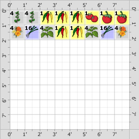 I designed this garden for a beginner gardener. I've chosen plants that are easy to grow. This garden is for a friend who loves spicy food, so I've included lots of chili peppers. You can substitute bell peppers for some of the chilis, or add more tomatoes or Malabar spinach if you prefer. The only missing ingredient is garlic, which will need to be planted in the fall for next spring. Onions, marigolds and green onions were incuded to deter pests from aphids to deer, and to improve flavor of the Malabar spinach, peppers and tomatoes.