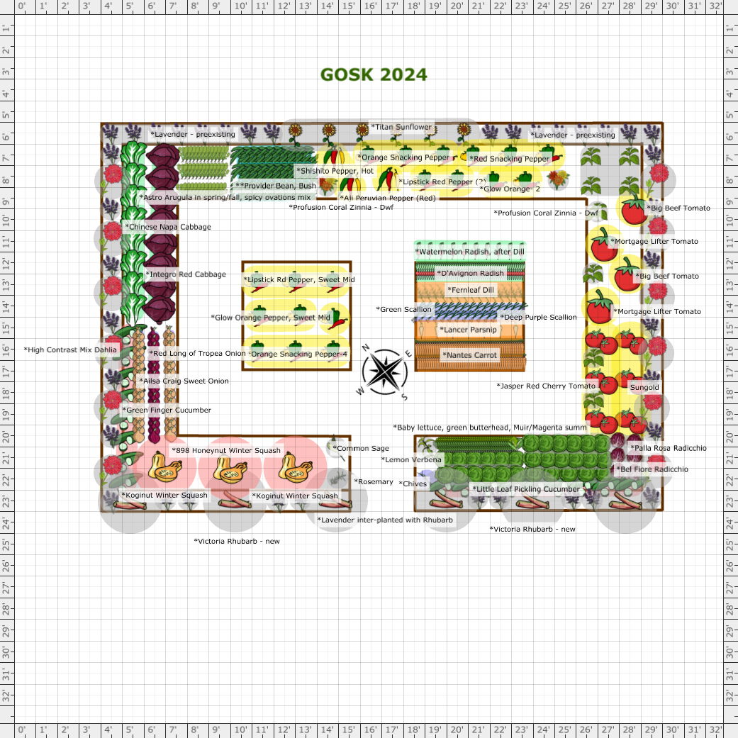 | | Plant | Number | Spacing | Spacing in Rows | Notes |