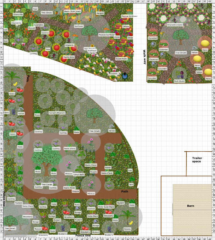 Banana, strawberry, blueberry, mizuna, celery, water cress, artichoke, comfrey, hosta, taro, Swiss chard, fava beans, mustard greens, hibiscus, chives, arugula, radish, Malabar spinach