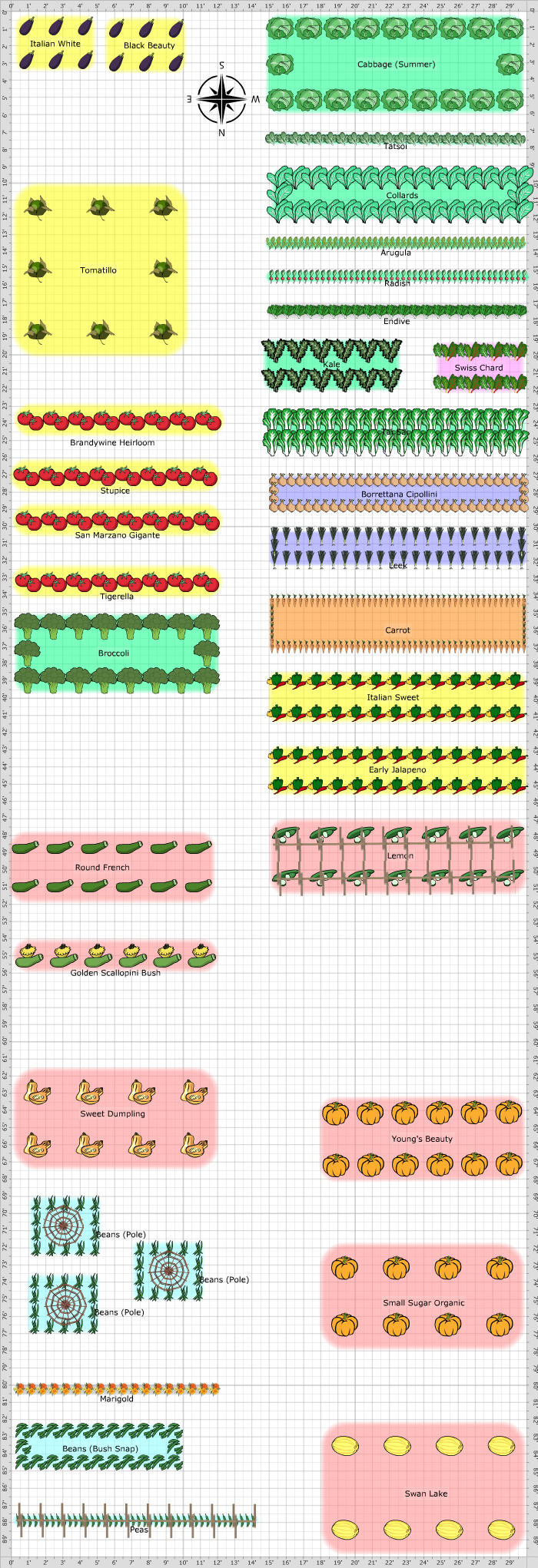 | 6 | 1' 3" | 1' 1" x 1' 5" | Eggplant, Italian White