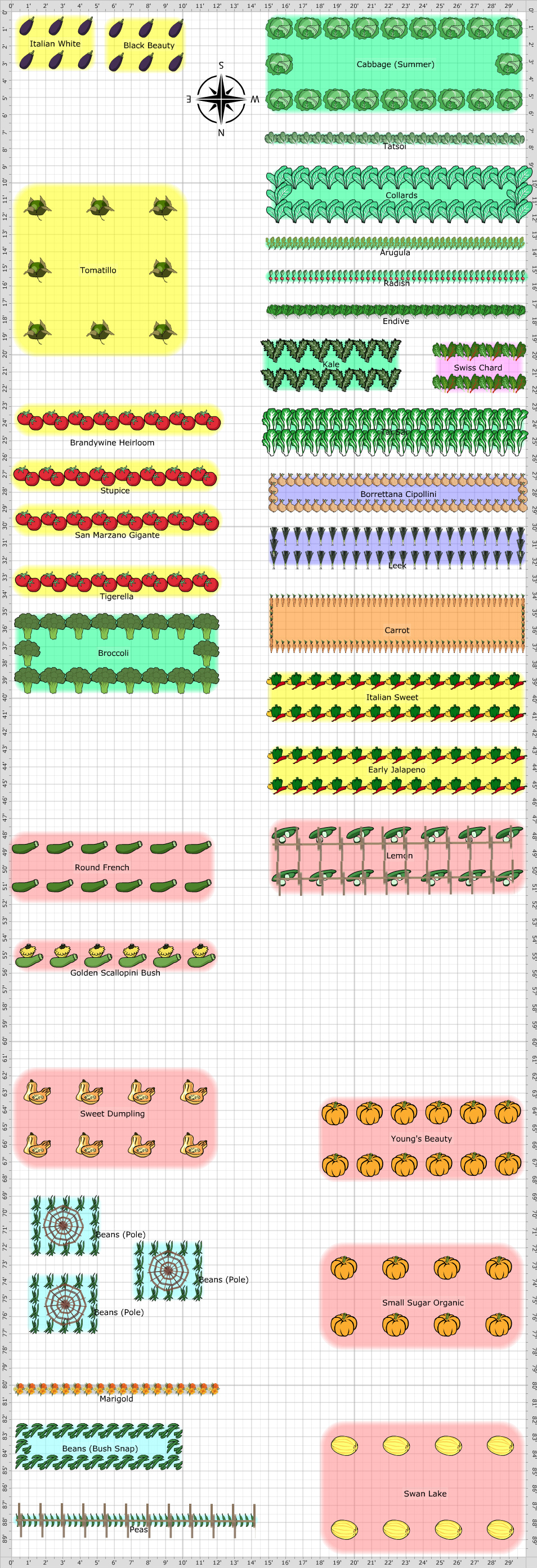 | | Plant | Number | Spacing | Spacing in Rows | Notes |