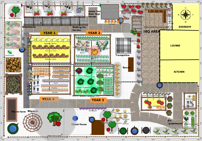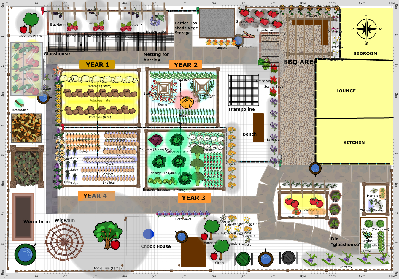 | | Plant | Number | Spacing | Spacing in Rows | Notes |