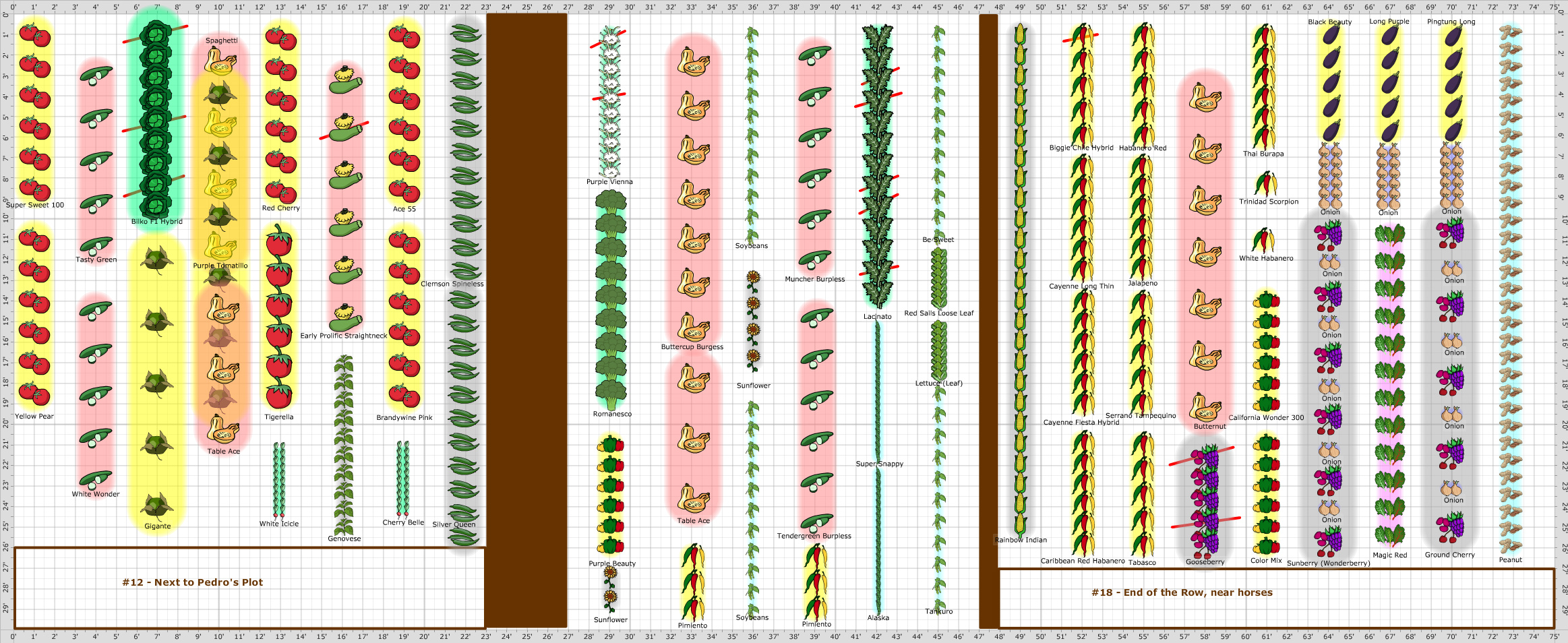 | | Plant | Number | Spacing | Spacing in Rows | Notes |