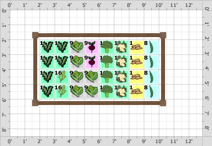 | | Plant | Number | Plants per Square Foot | Notes |