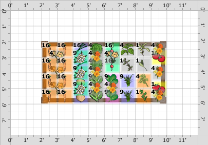 | | Plant | Number | Spacing | Spacing in Rows | Notes |