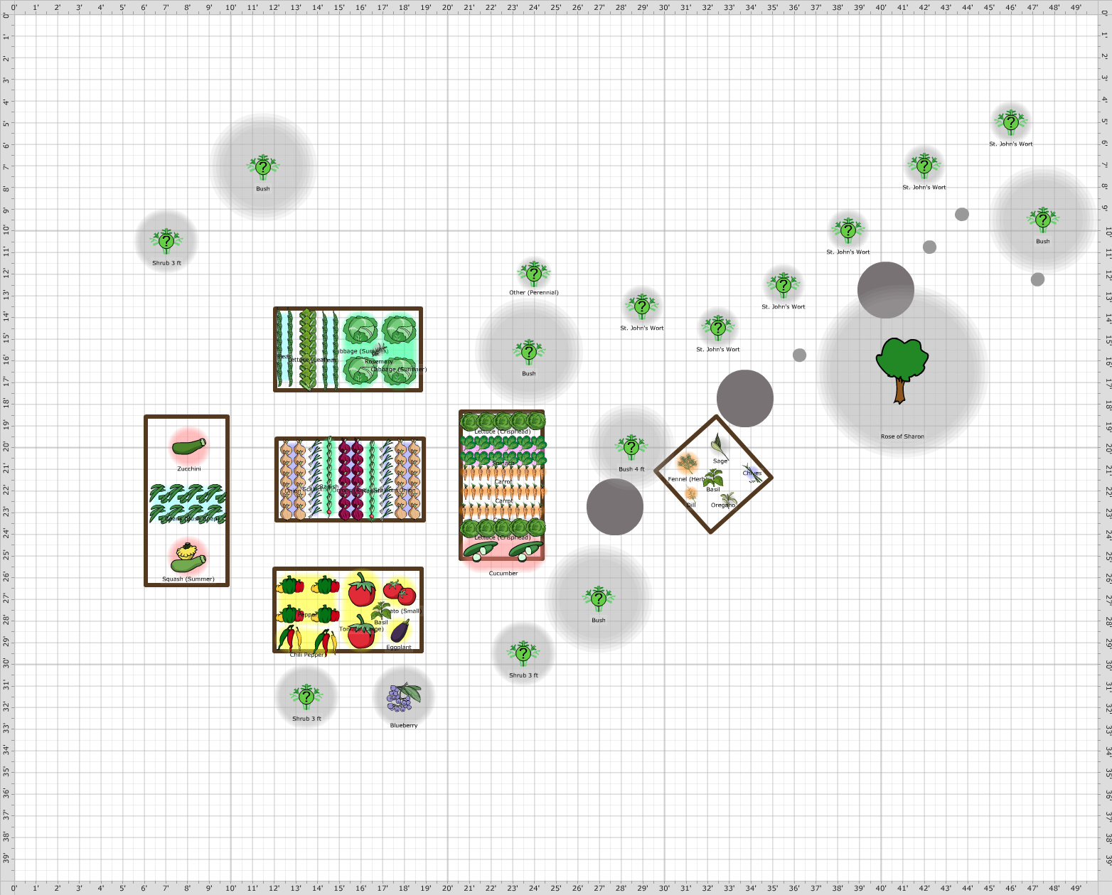| | Plant | Number | Spacing | Spacing in Rows | Notes |